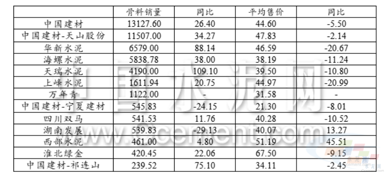 水泥大數(shù)據(jù):2022年部分上市公司骨料價(jià)格及銷(xiāo)量情況(單位:萬(wàn)噸,元/噸,%)