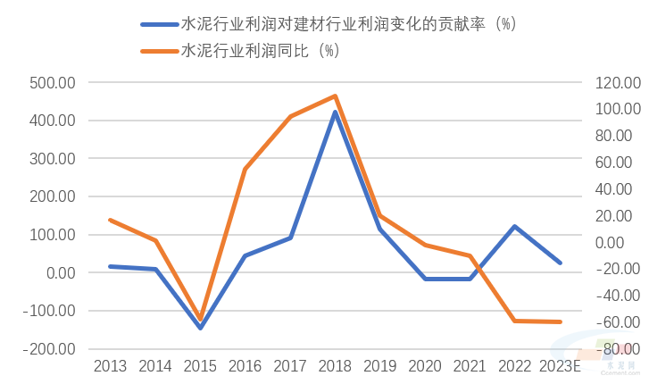 圖2:水泥行業(yè)利潤(rùn)的大幅波動(dòng)對(duì)建材行業(yè)利潤(rùn)變化的影響極大