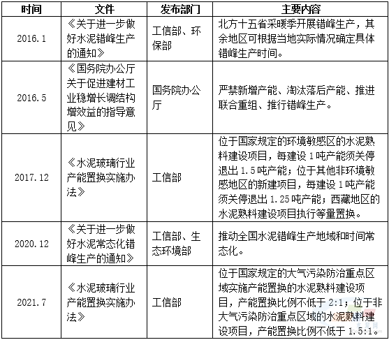 表1:2016年以來(lái)水泥行業(yè)供給側(cè)改革主要政策梳理