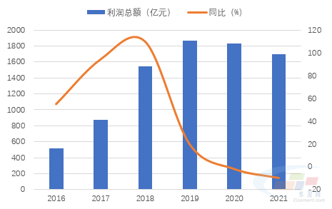 圖1: 2016-2021水泥行業(yè)利潤(rùn)走勢(shì)