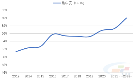 圖4: 2022年前十熟料產(chǎn)能集中度在60%左右
