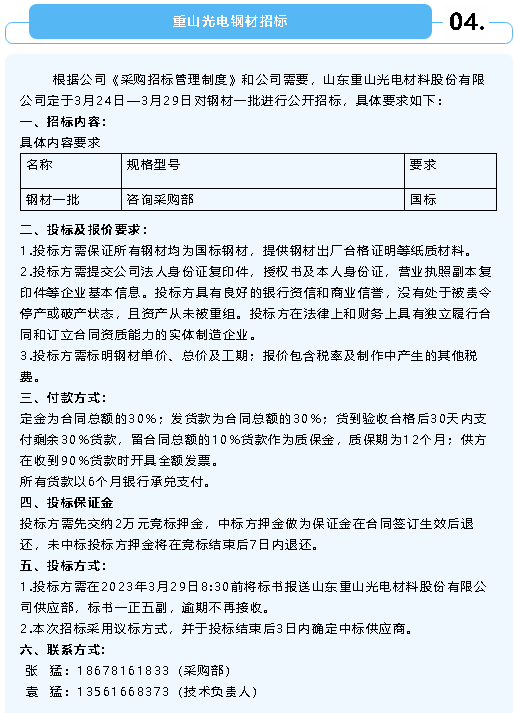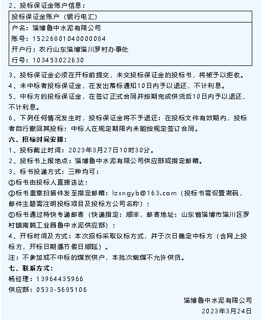 【招標(biāo)公告】魯中水泥氟石膏、煙煤招標(biāo)、螢澤礦業(yè)彩鋼房招標(biāo)、重山光電鋼材招標(biāo)
