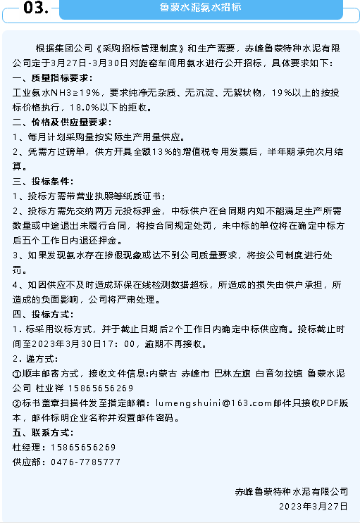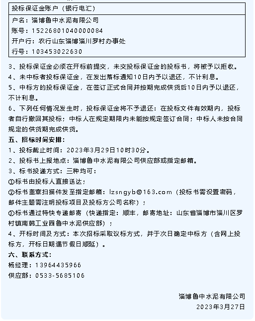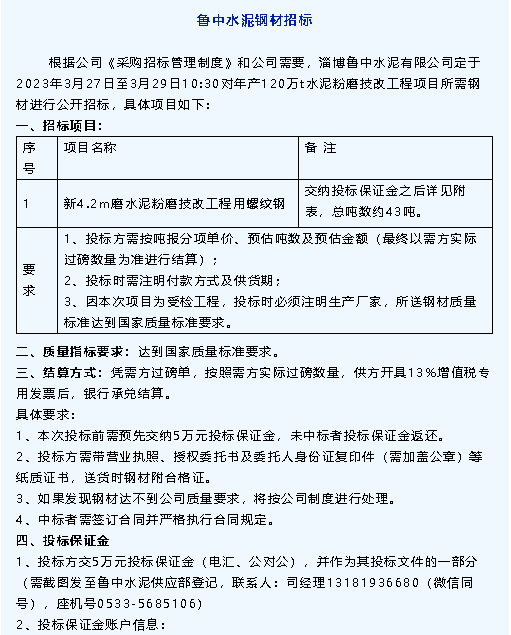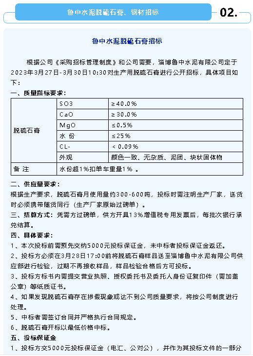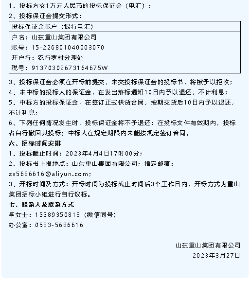 【招標(biāo)公告】重山集團(tuán)、魯中水泥、魯蒙水泥