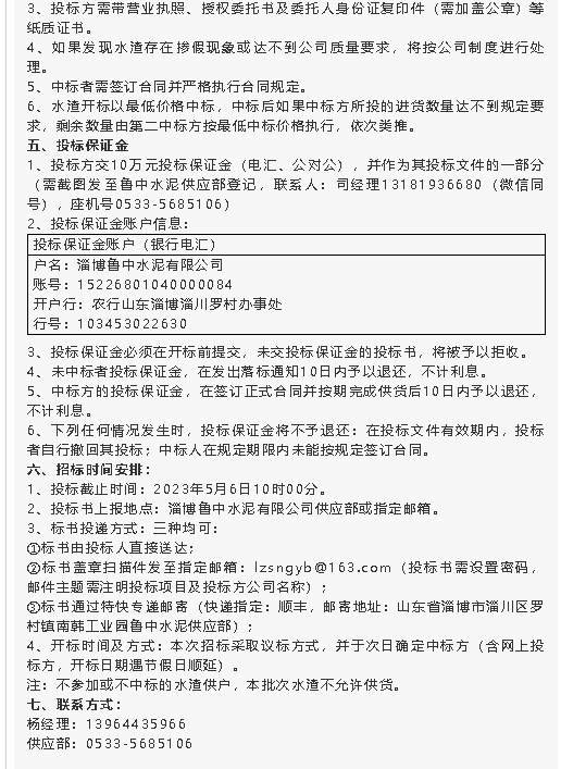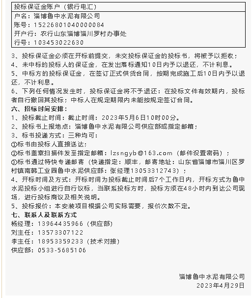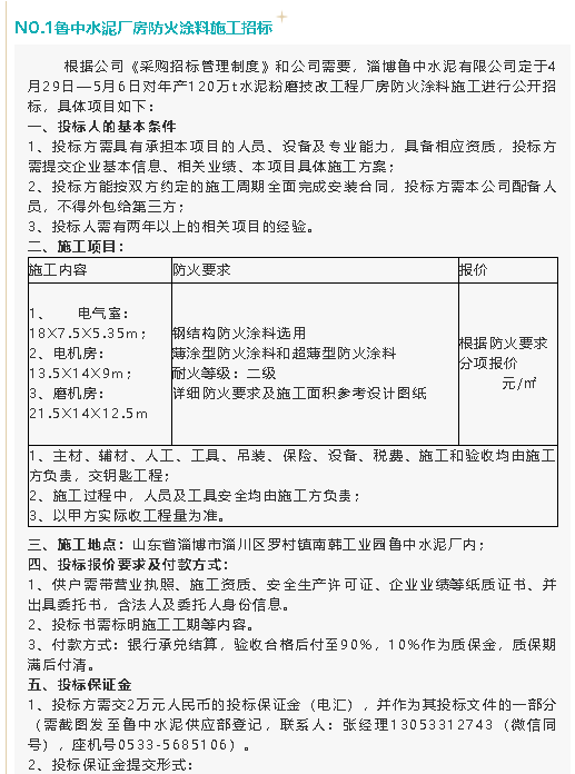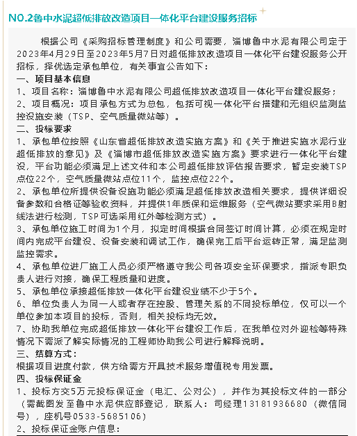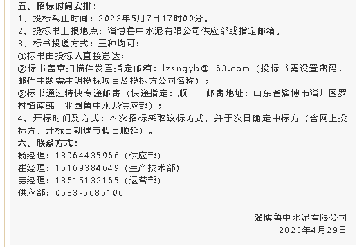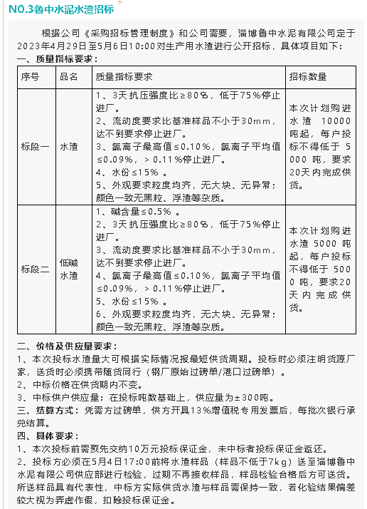 【招標公告】魯中水泥