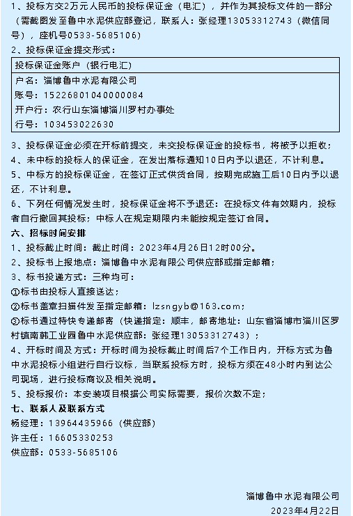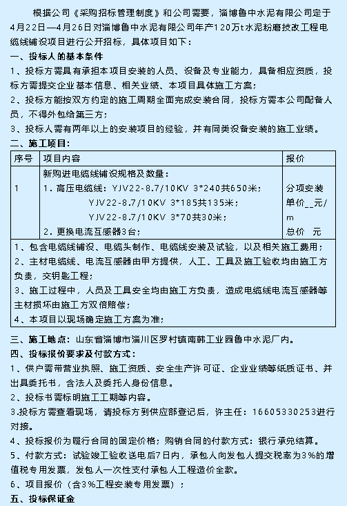 【招標公告】魯中水泥