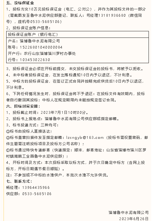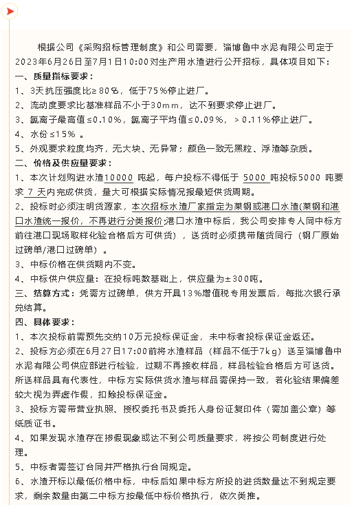 【招標(biāo)公告】魯中水泥