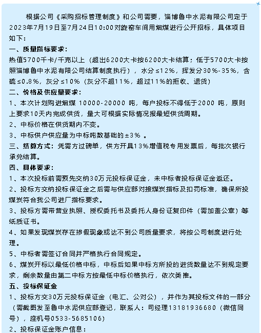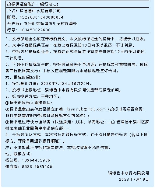 【招標(biāo)公告】魯中水泥