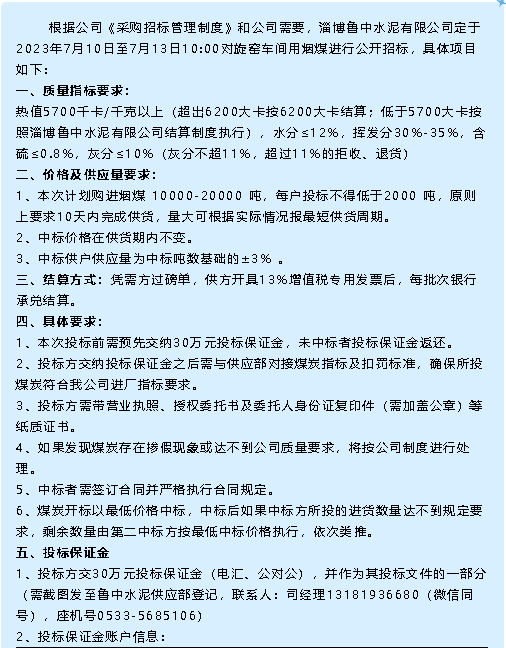 【招標(biāo)公告】魯中水泥