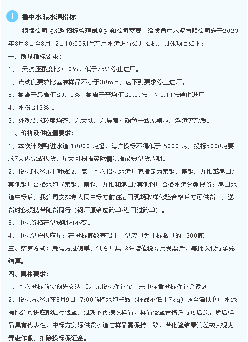 【招標公告】魯中水泥、重山光電