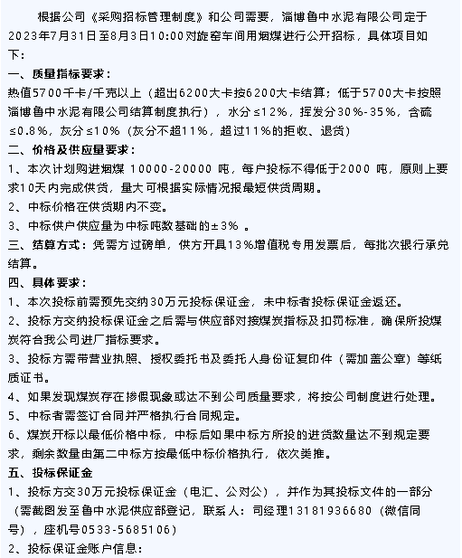 【招標(biāo)公告】魯中水泥