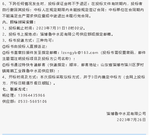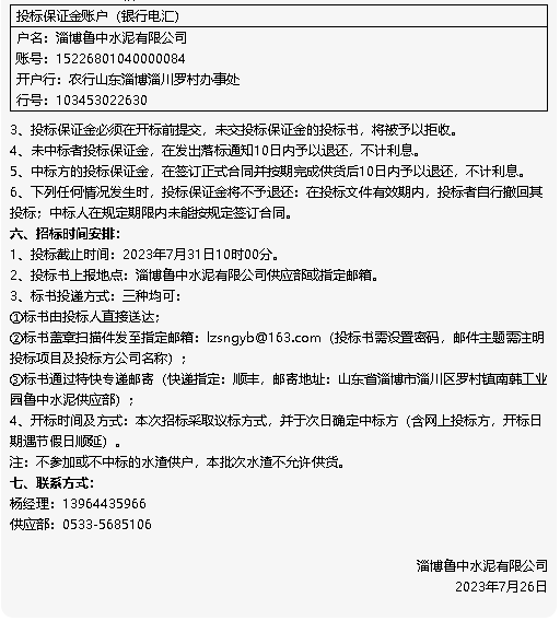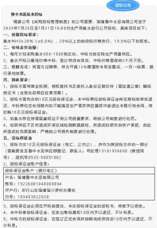 【招標公告】魯中水泥
