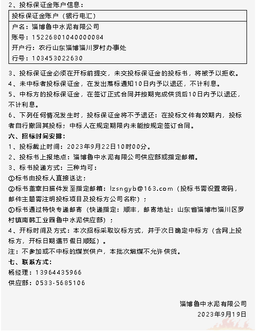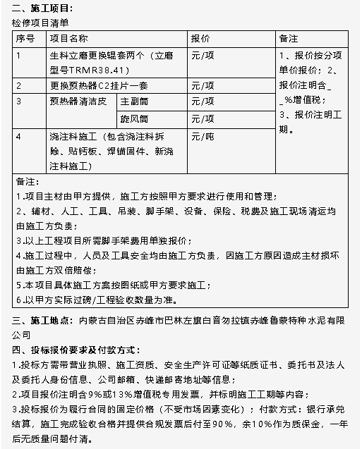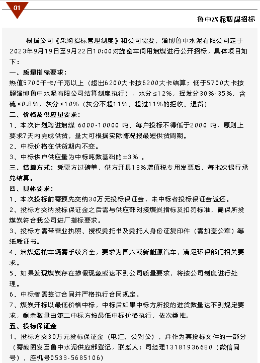 【招標(biāo)公告】魯中水泥煙煤、螢澤礦業(yè)物料運(yùn)輸、魯蒙水泥旋窯檢修項(xiàng)目招標(biāo)