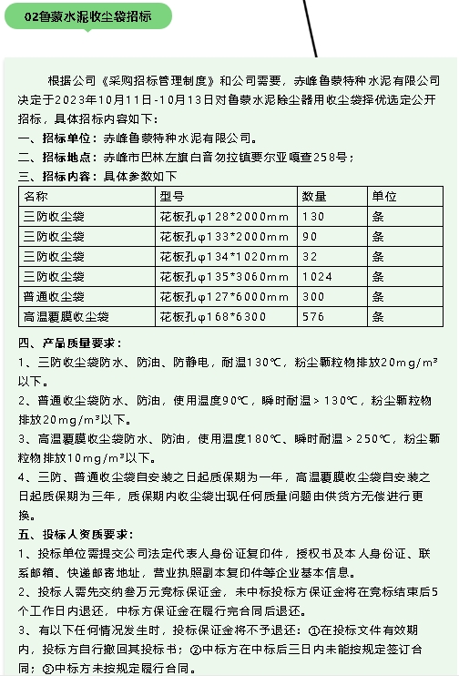 【招標(biāo)公告】魯蒙水泥