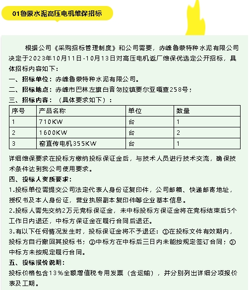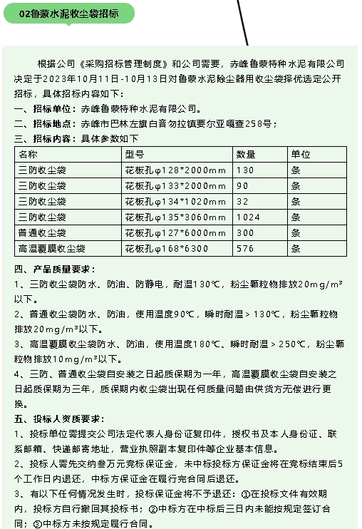 【招標公告】魯蒙水泥
