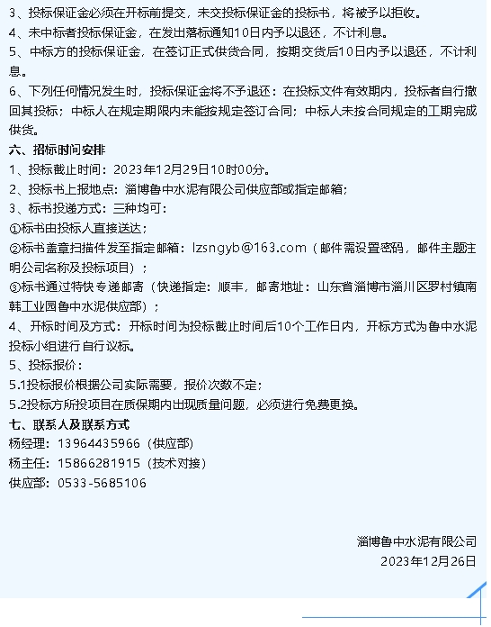 【招標(biāo)公告】魯中水泥2024年消防設(shè)施維護保養(yǎng)項目、澆注料招標(biāo)