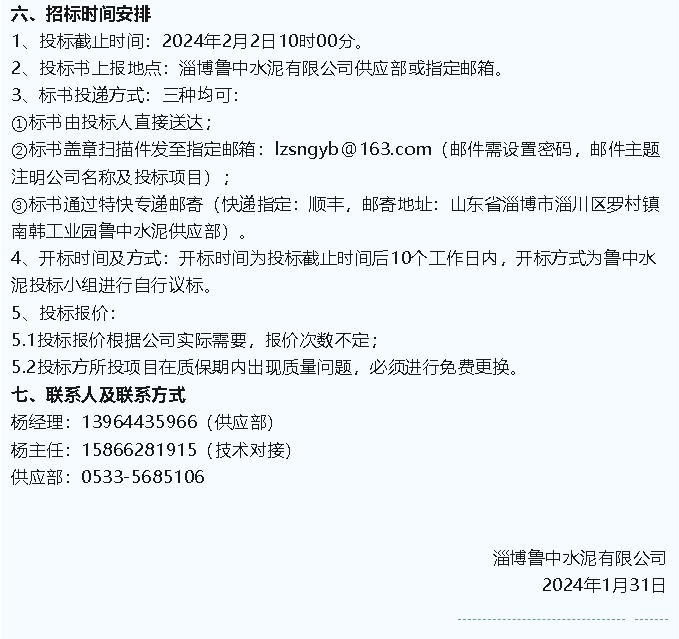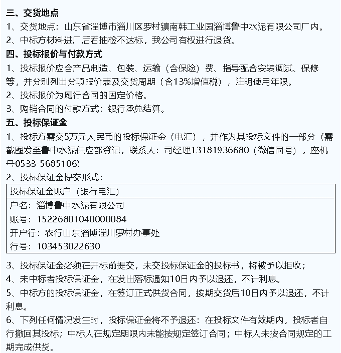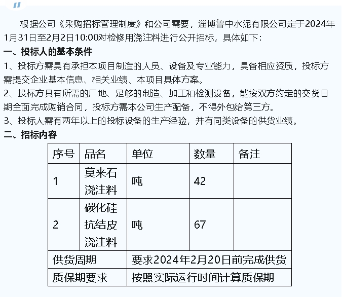 【招標(biāo)公告】魯中水泥