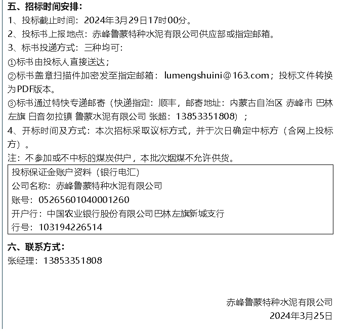 【招標(biāo)公告】魯中水泥、魯蒙水泥
