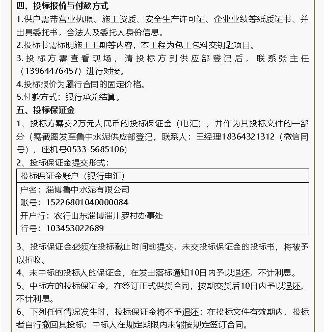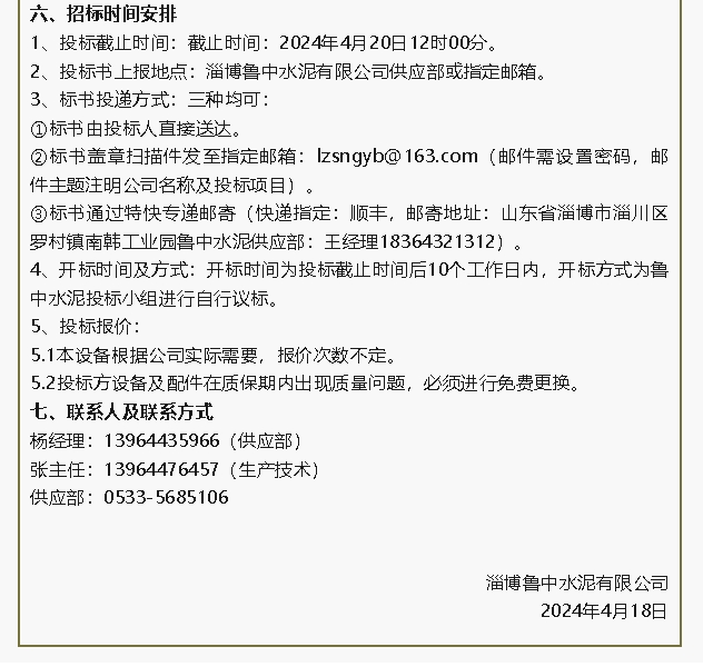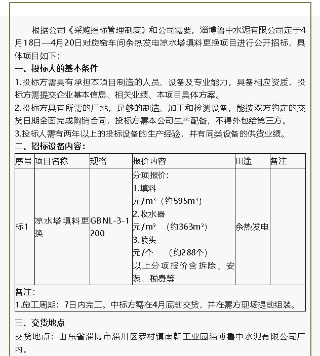 【招標公告】魯中水泥
