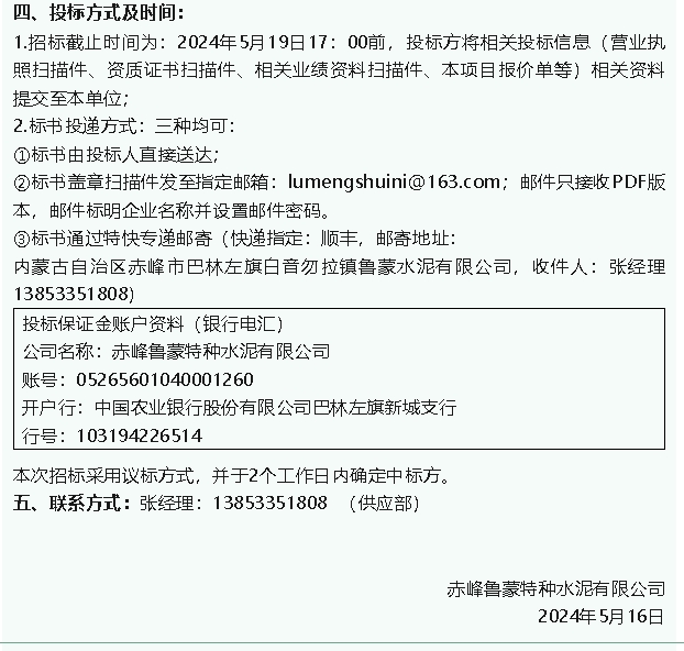 【招標(biāo)公告】魯蒙水泥