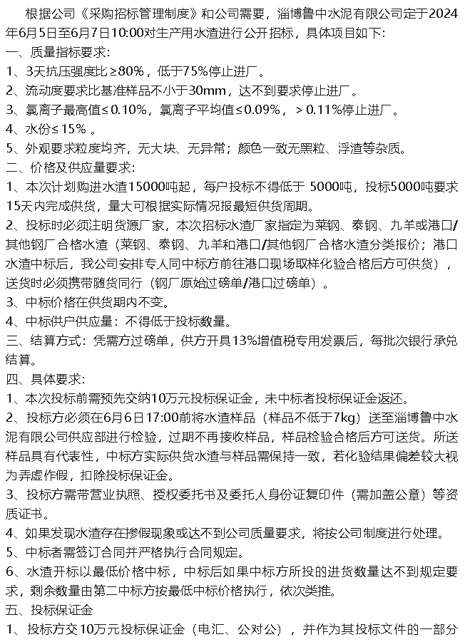 【招標(biāo)公告】魯中水泥