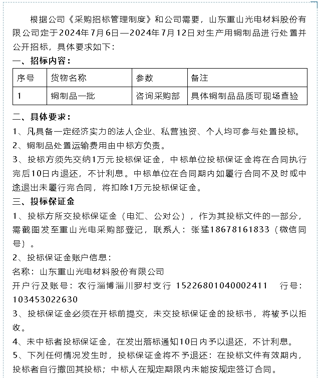 【招標(biāo)公告】重山光電