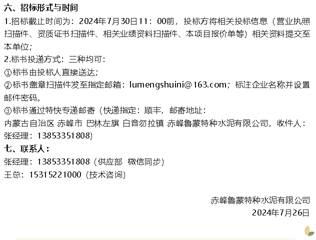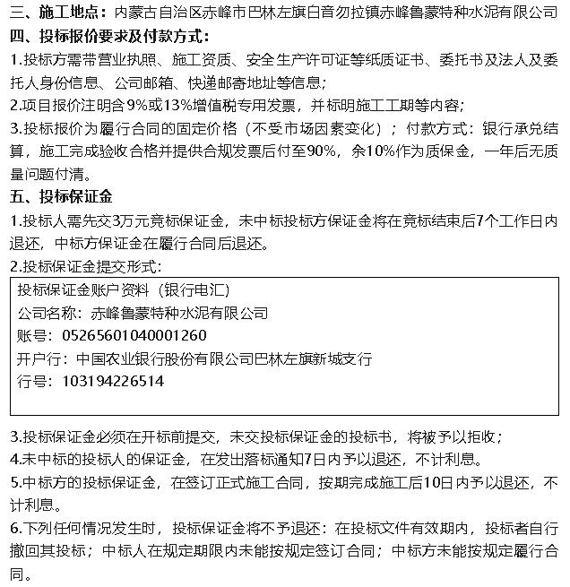 【招標(biāo)公告】魯蒙水泥檢修項目、煙煤招標(biāo)