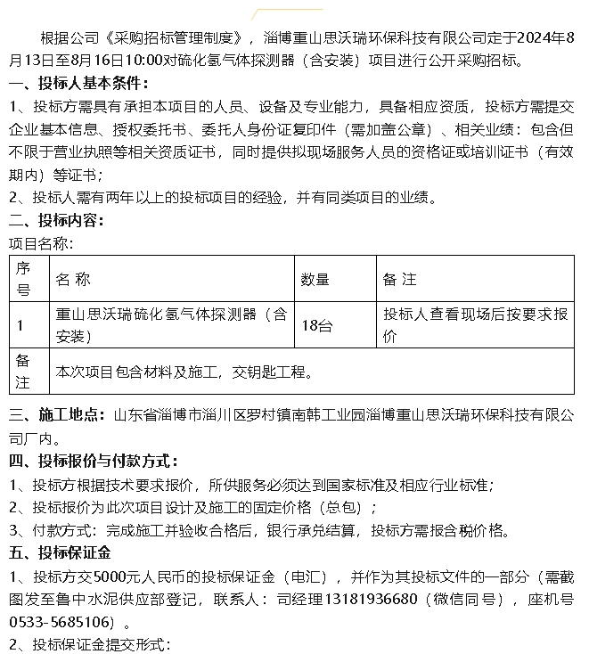 【招標(biāo)公告】重山思沃瑞