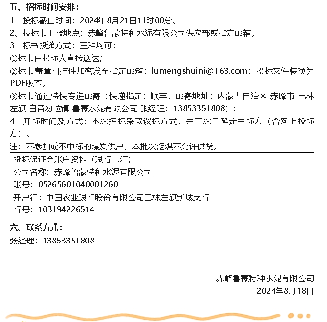 【招標(biāo)公告】魯蒙水泥