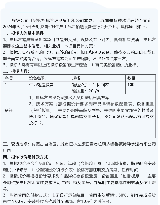 【招標(biāo)公告】魯蒙水泥