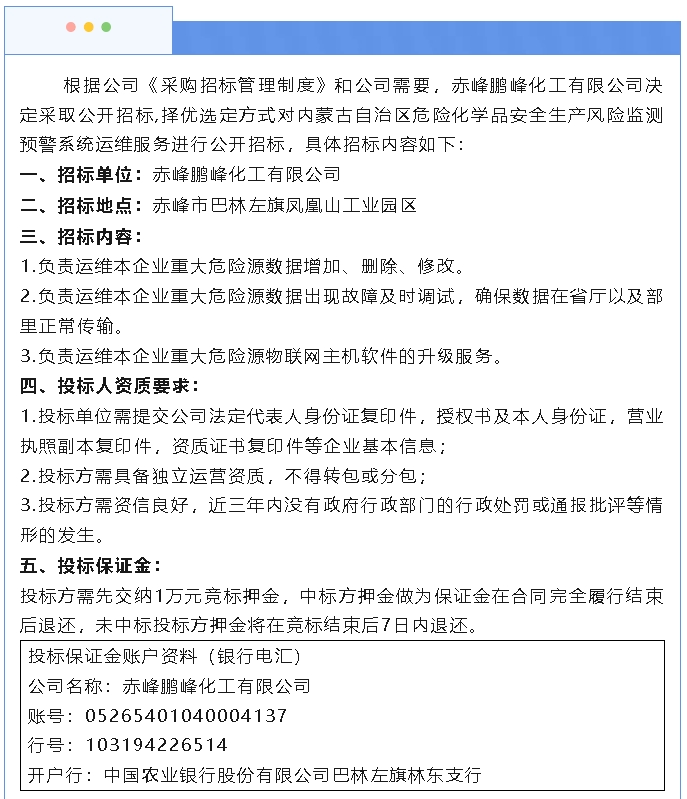 【招標(biāo)公告】鵬峰化工