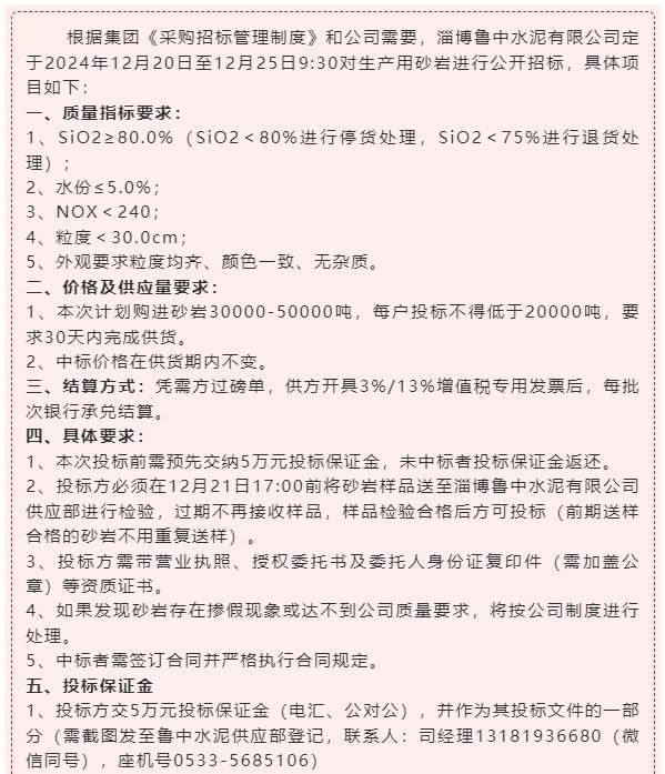 【招標(biāo)公告】魯中水泥