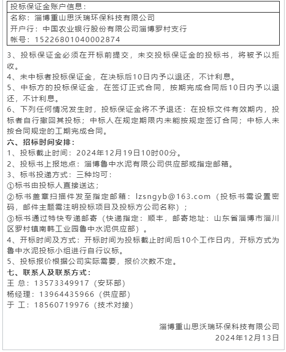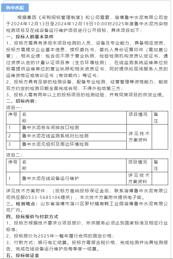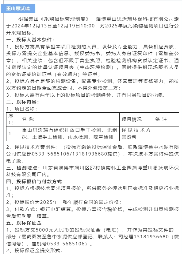 【招標(biāo)公告】魯中水泥、重山思沃瑞