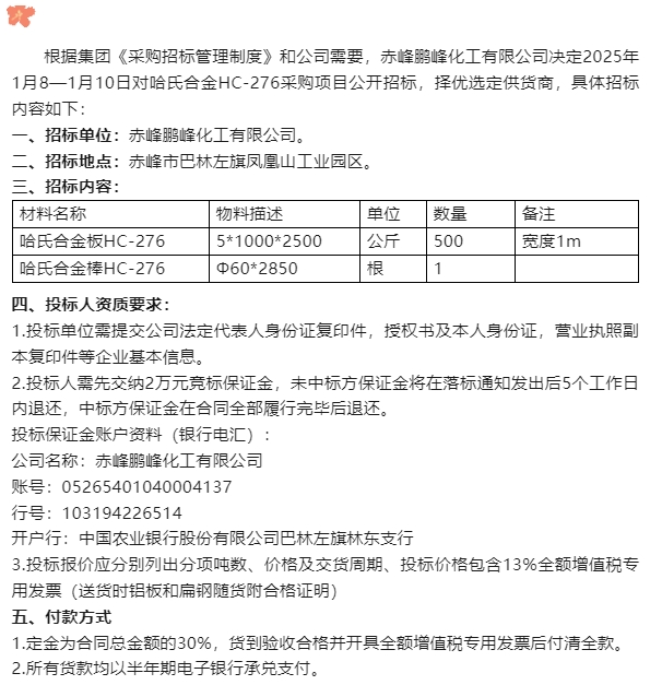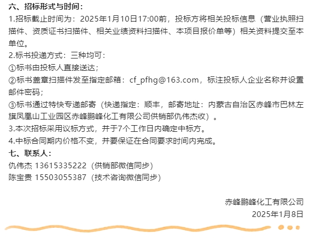 【招標(biāo)公告】鵬峰化工