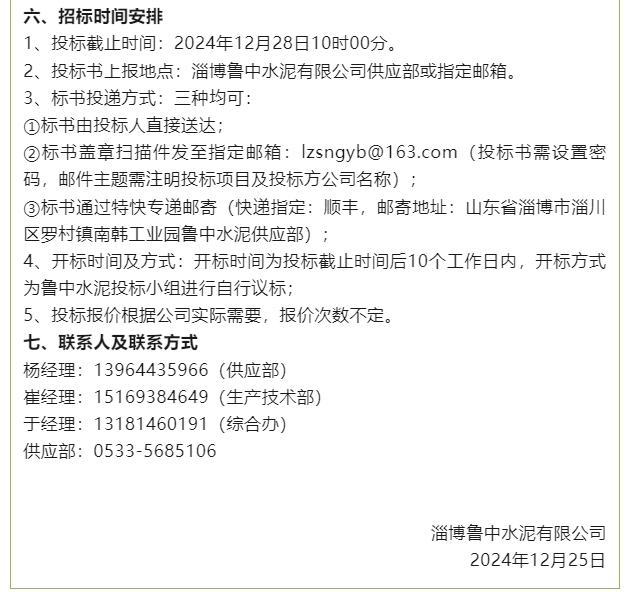 【招標(biāo)公告】魯蒙水泥、魯中水泥、重山思沃瑞