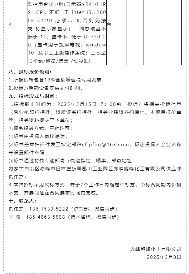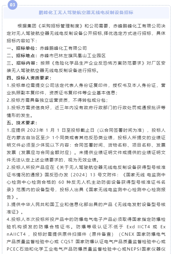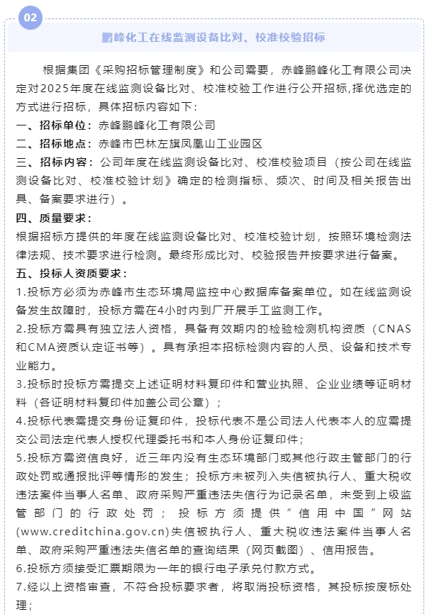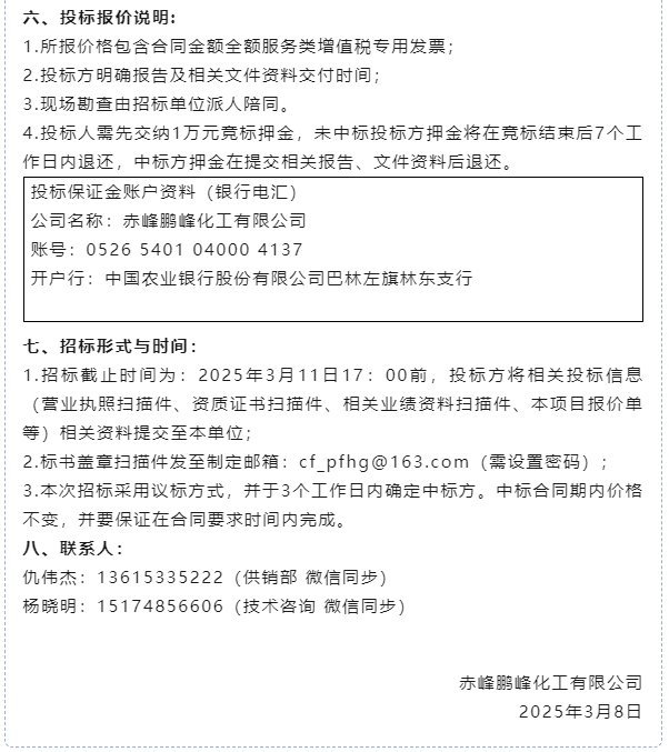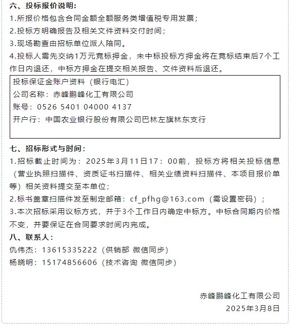 【招標(biāo)公告】鵬峰化工