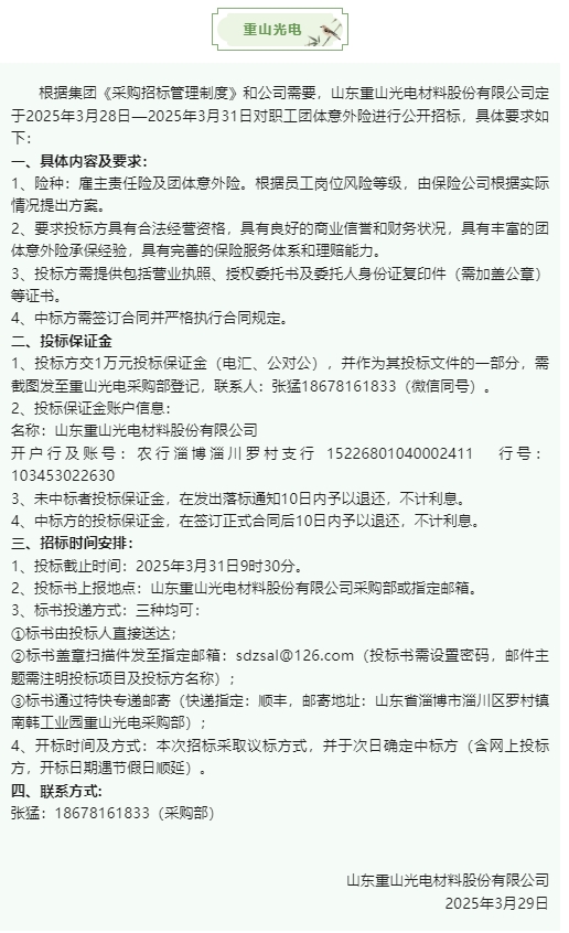 【招標(biāo)公告】魯中水泥、重山光電