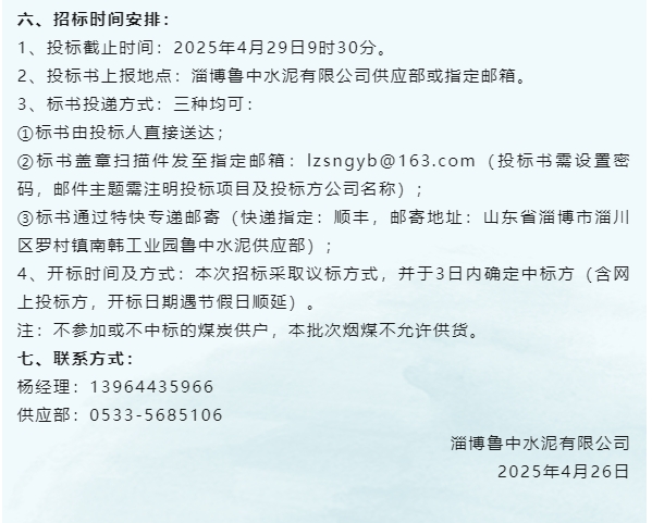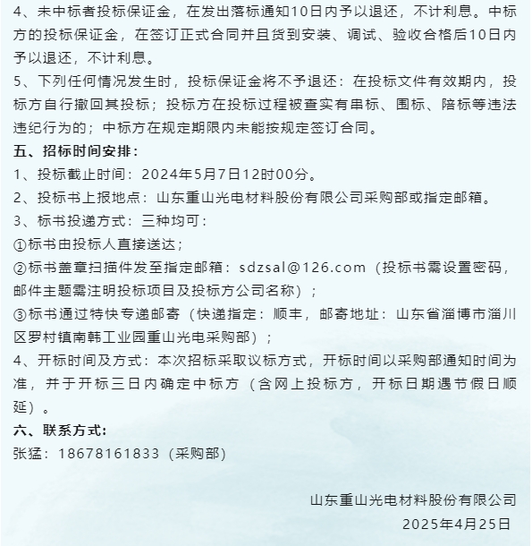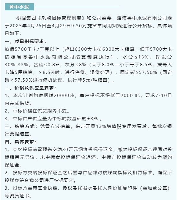 【招標公告】魯中水泥、重山光電