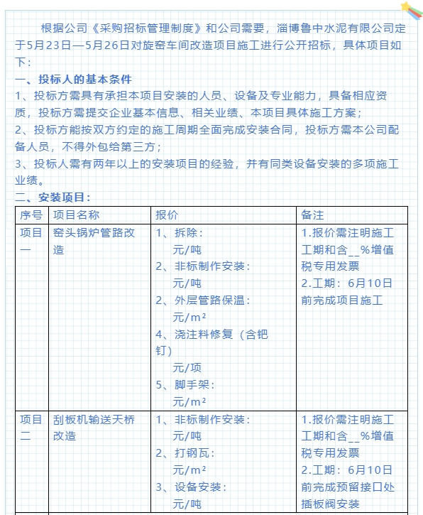 【招標(biāo)公告】魯中水泥