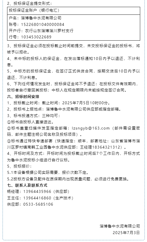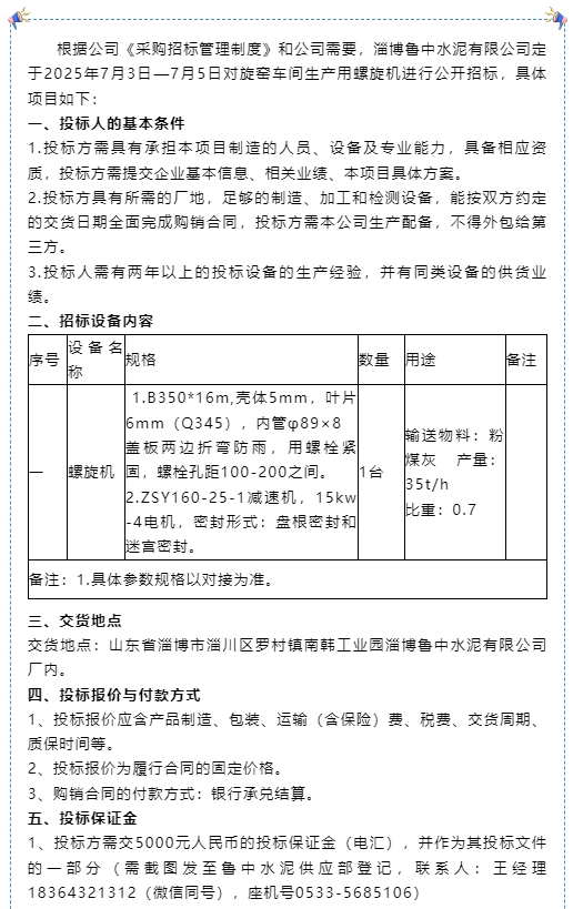 【招標(biāo)公告】魯中水泥