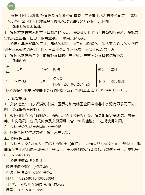 【招標公告】魯中水泥