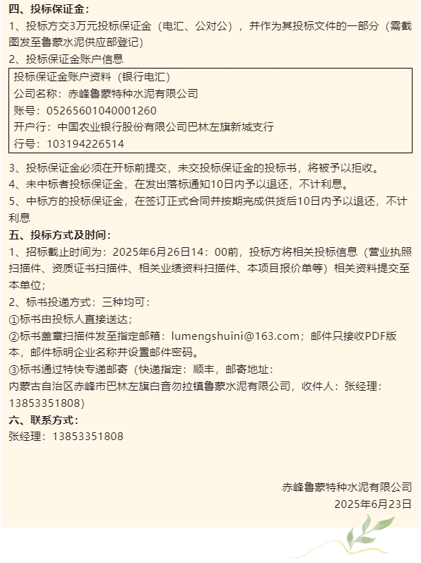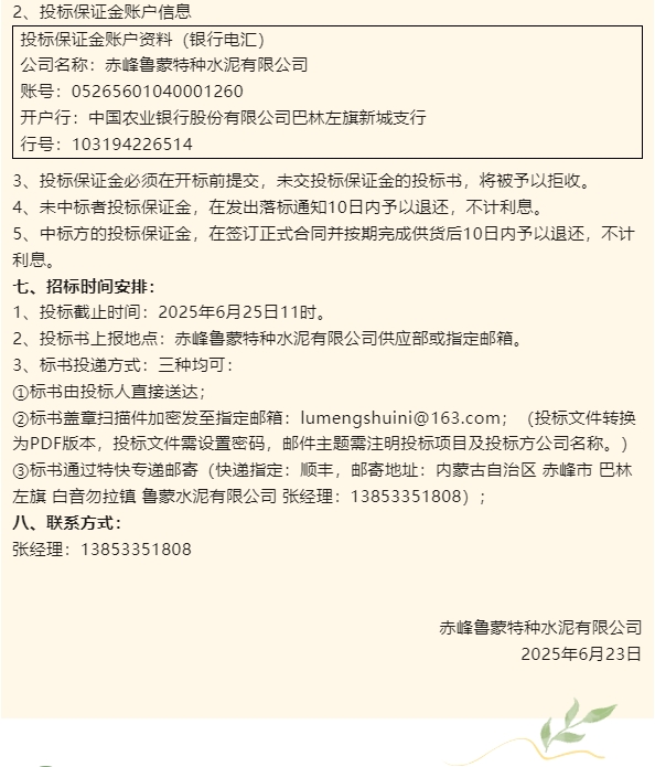 【招標(biāo)公告】魯蒙水泥