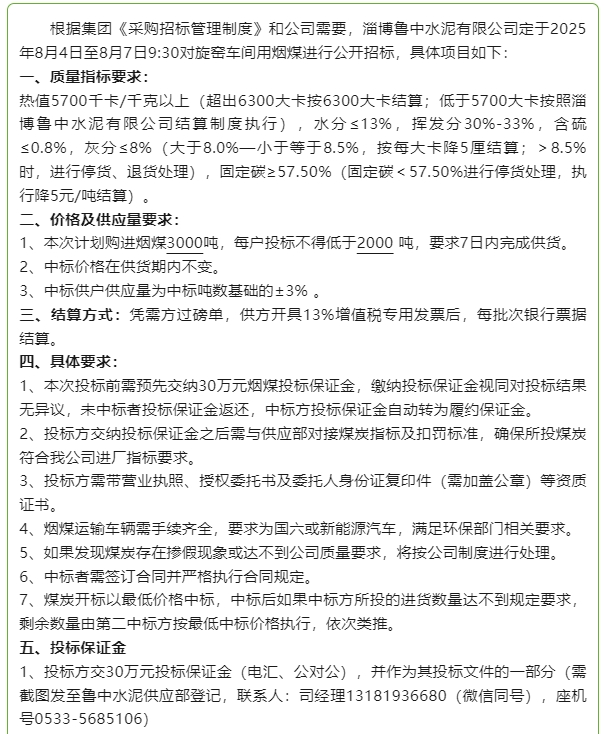 【招標(biāo)公告】魯中水泥