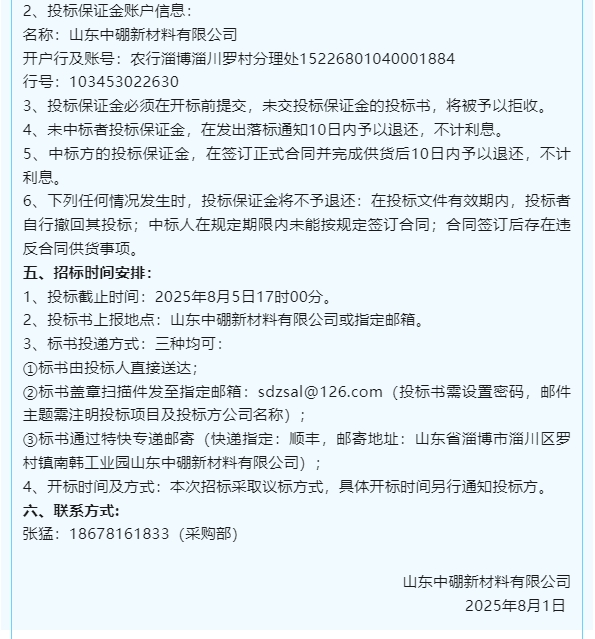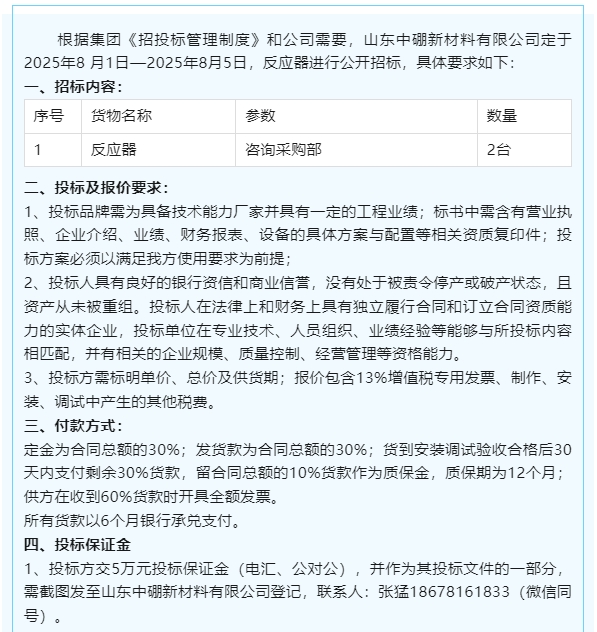 【招標(biāo)公告】中硼新材料