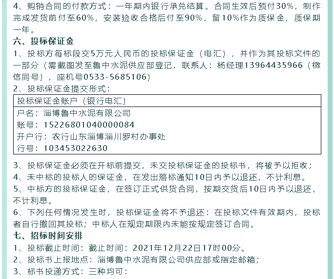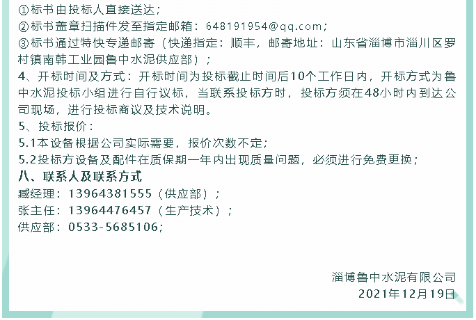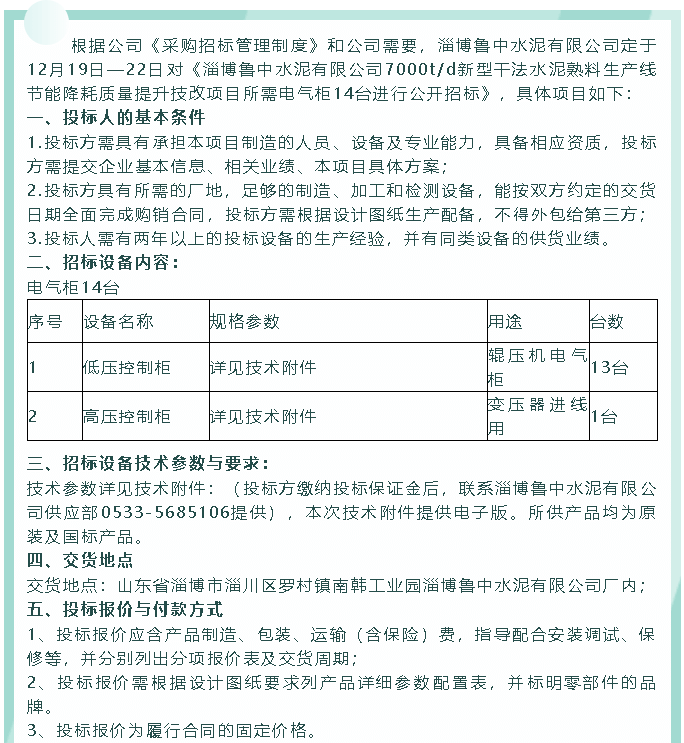 【招標(biāo)公告】魯中水泥