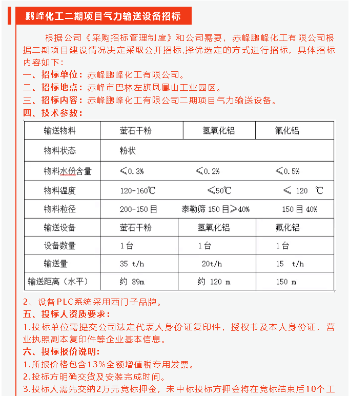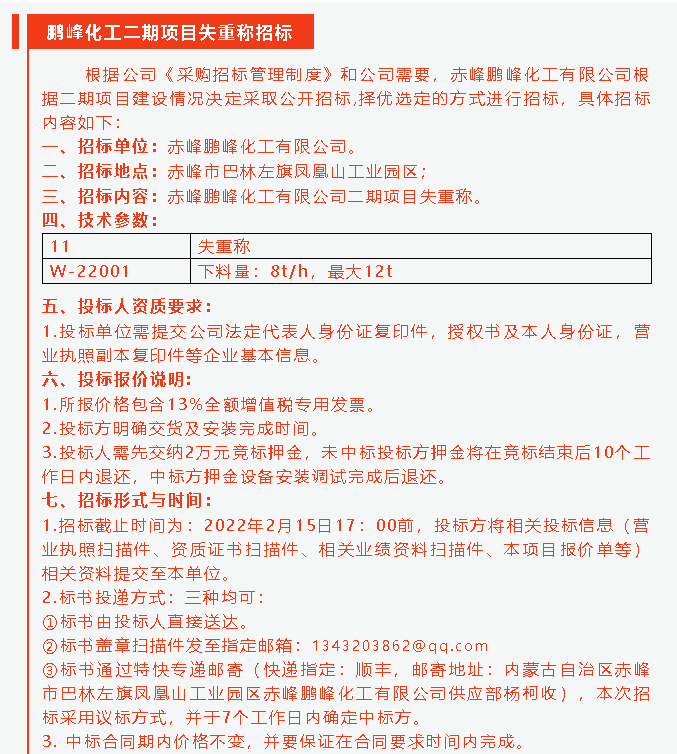 【招標(biāo)公告】鵬峰化工