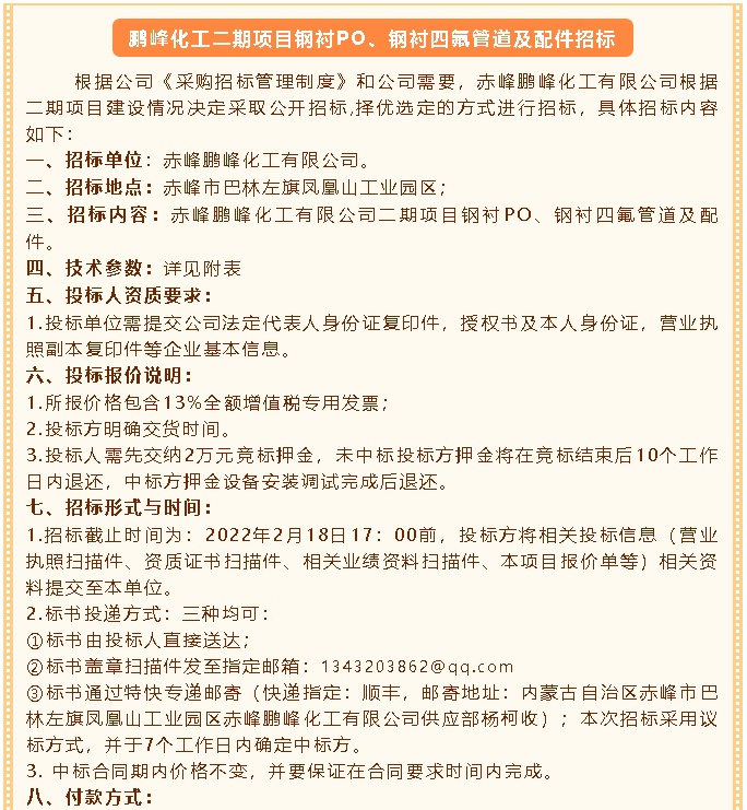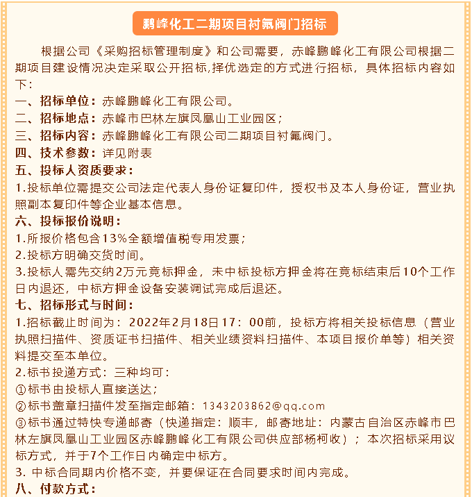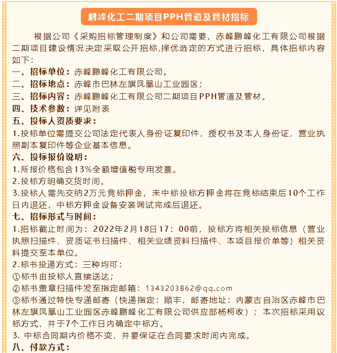 【招標(biāo)公告】鵬峰化工
