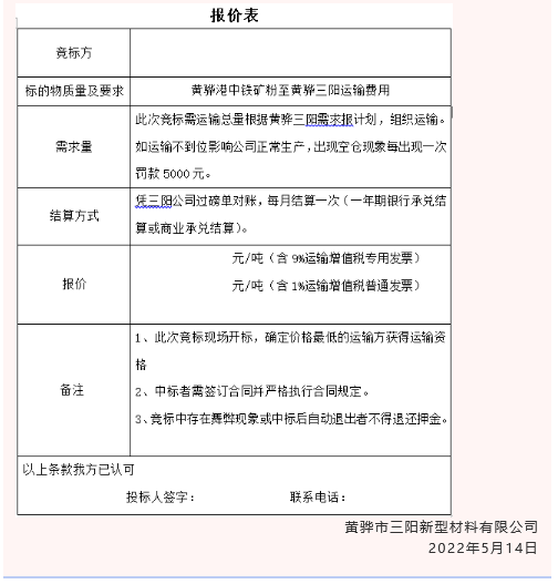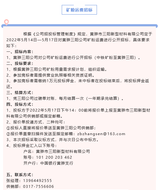 【招標(biāo)公告】黃驊三陽粉煤灰、礦粉運(yùn)費(fèi)招標(biāo)