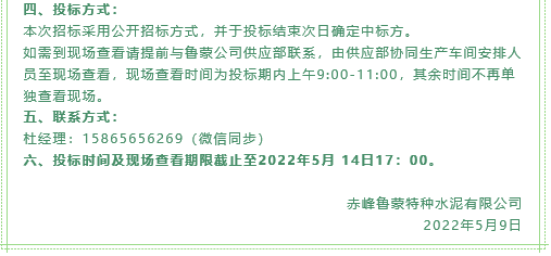 【招標(biāo)公告】魯蒙公司