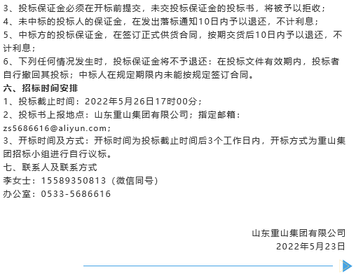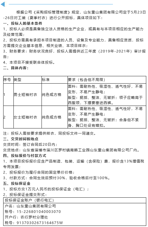 【招標(biāo)公告】重山集團(tuán)