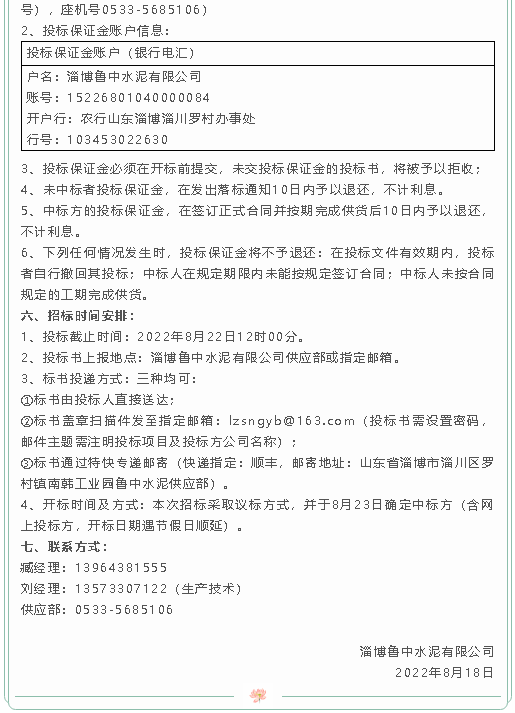【招標(biāo)公告】魯中水泥